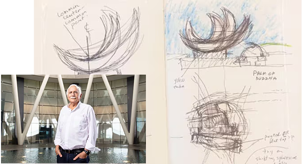 由著名建築師摩西·薩夫迪(Moshe Safdie)設計,我們的博物館靈感源自盛開的蓮花。建築的每一片「花瓣」皆為獨立展廳,天窗灑下自然光,照亮弧形內牆,在城市天際線中勾勒出極具張力的輪廓。